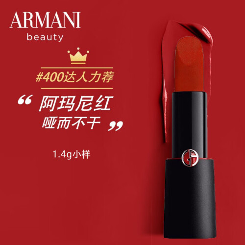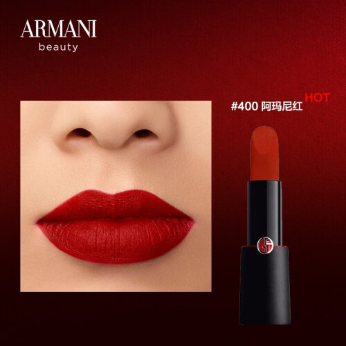 阿玛尼这款口红外壳颜值高,为红黑色,磁铁扣设计,经典色号400正红色,是阿玛尼的首款口红色号,全系12色,哑光质地,显色度好,持久度好,日常通勤,显白显气质~