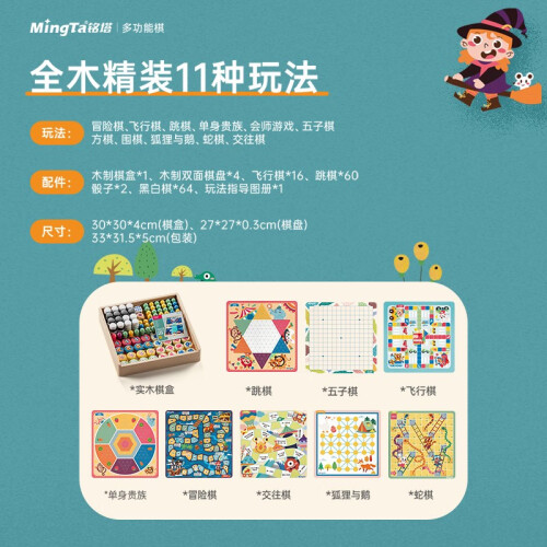 当前的位置: 首页 > 今日值得买 > 铭塔多合一游戏棋大全男孩女孩飞行棋五子棋跳棋围棋儿童亲子玩具 【全木精装11种玩法】