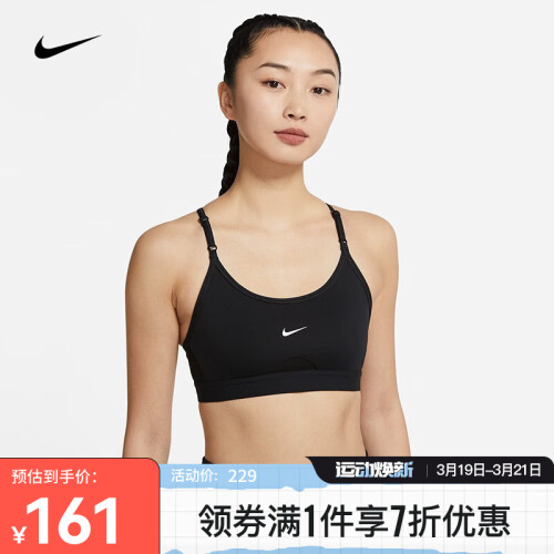 .Nike Indy女子低强度支撑衬垫∪领运动内衣轻盈舒适,从低强度训练到日常活动,可满足你的不同需求。该款柔软透气的面料可随行而动,且含有再生聚酯纤维。另搭配可拆卸胸垫,方便随时调节贴合度。网眼布侧边拼接的造型类似于Swoosh标志,提升透气效果。U领和正面中央网眼拼接设计,帮助保持空气流通。