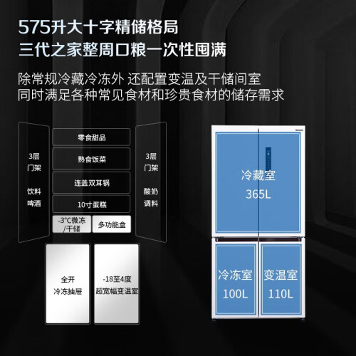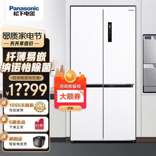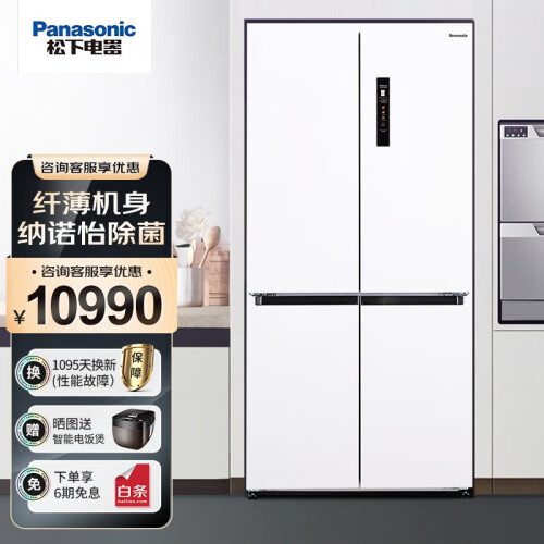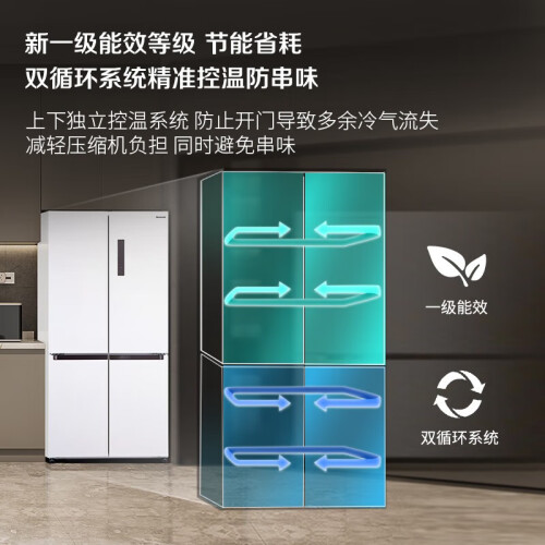 Panasonic 松下 NR-JW58CMA-W 对开门冰箱 575L 将空间美学与现代家居融合,通过自然延伸的腰线,尽显厨居一体概念。纤薄设计,以纯平嵌入于橱柜,增加空间利用率,满足厨居一体化需求。575L大容量,满足全家一周囤鲜需求,满足不同食材藏鲜。