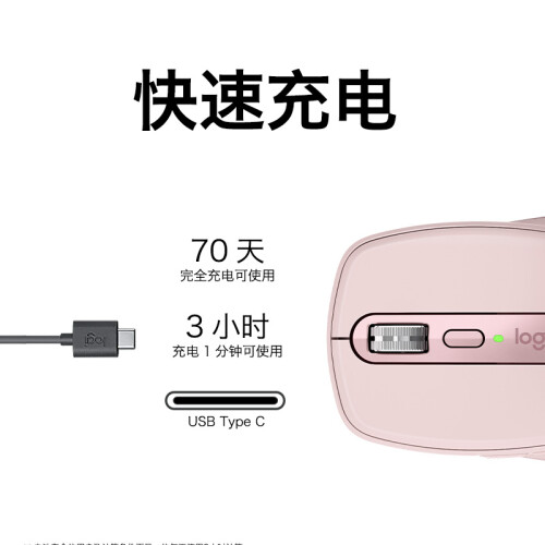 罗技(Logitech)这款鼠标,采用Magspeed电磁滚动技术,将速度、精度和静音结合。采用500毫安可充电锂离子电池,1分钟快速充电可持续使用3小时,充电完成后可使用长达560小时,使用的USB-C线缆可以在充电时办公。传感器支持最大4000DPI,DPI可调范围200-4000,可以50DPI为增量进行设置。