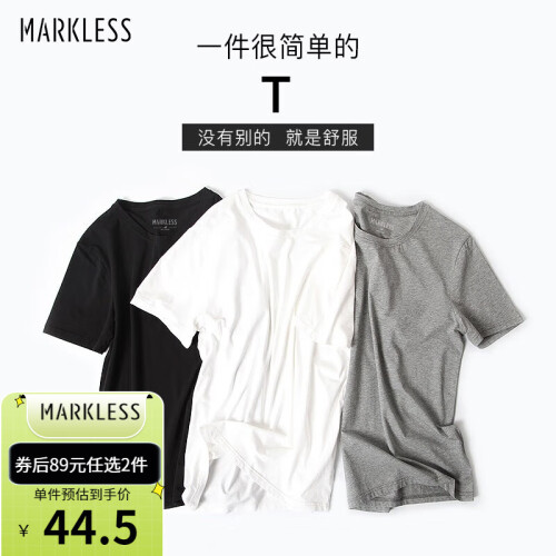 MARKLESS 男士纯棉圆领短袖T恤 TXA5630M2,时尚百搭,采用100%棉质感触手可及,透气舒适,2*2双层螺纹领,耐穿不易变型。