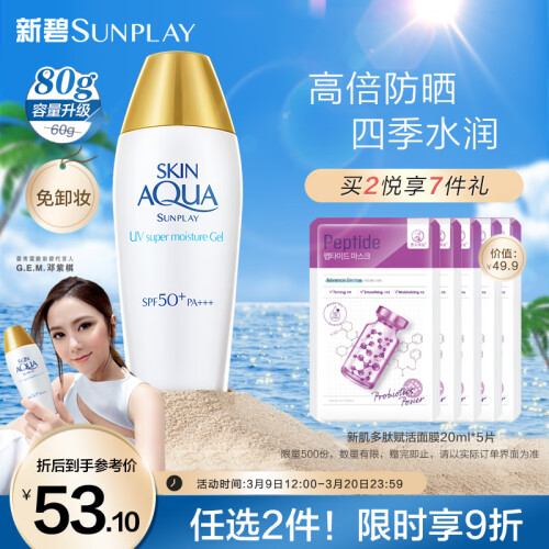 Mentholatum曼秀雷敦是知名度超高的平价护肤品牌,来自日本。这款新碧双重保湿水感防晒露,采用了solarex-3三重护肤级防晒技术,防晒指数高、波段全,不会厚重、拔干,大量涂抹时脸部的泛白度也很轻微。它颜色微黄,有着水润感的乳液质地,颜色微黄,添加了纳米透明质酸、水活银耳精华、维C,上脸能感受到保湿力,防止日晒造成的水分流失,肤感是有滋润度的微粘微湿感,非常适合混干皮、中性皮、干性皮使用,80g容量也适合拿来做身体防晒。需要提醒的是,如果对酒精成分过敏的小伙伴可能不适合这款防晒。
