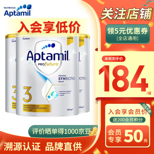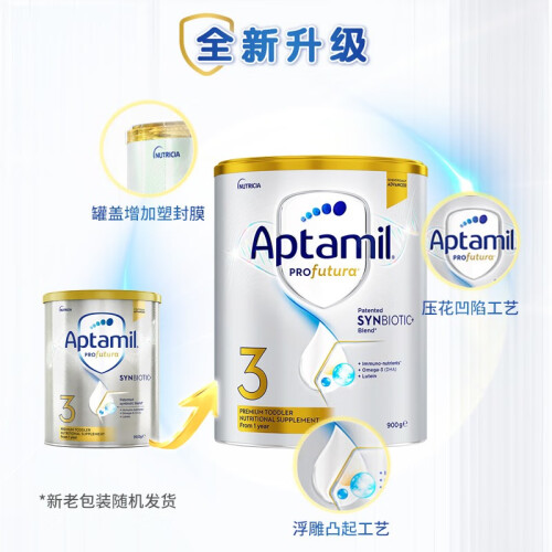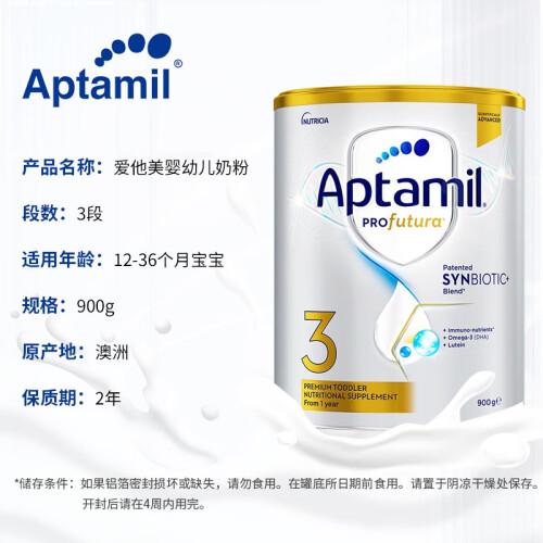 这款为澳洲Aptamil 爱他美白金版3段婴幼儿奶粉,相比金装版改良了配方,蕴含专利“低聚糖益生元”组成的合生素,更适合调节宝宝肠胃,优化了DHA、ARA含量配比,更利于宝宝的脑部发育和眼部发育,低蛋白水平促进婴儿生长水平更接近于母乳喂养的宝宝,尽量减低在宝宝5岁前成为超重儿童的可能性。规格:900g。