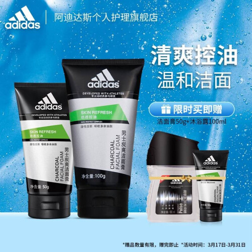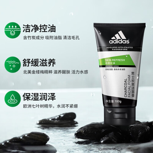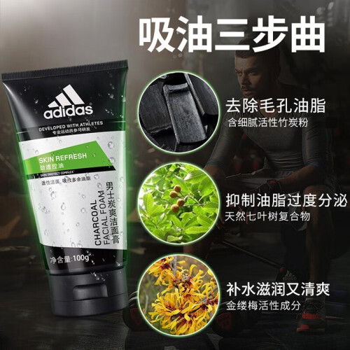 adidas阿迪达斯推出的这款男士洁面膏 ,蕴含竹炭颗粒、金缕梅活性成分、欧洲七树叶精华等,可吸附面部污垢和油脂,镇定舒缓,帮助改善毛孔粗大、黑头粉刺、油脂分泌过多、肤色暗哑等问题。膏体细腻,泡沫丰富易冲洗。建议与爽肤水和保湿乳液搭配使用。