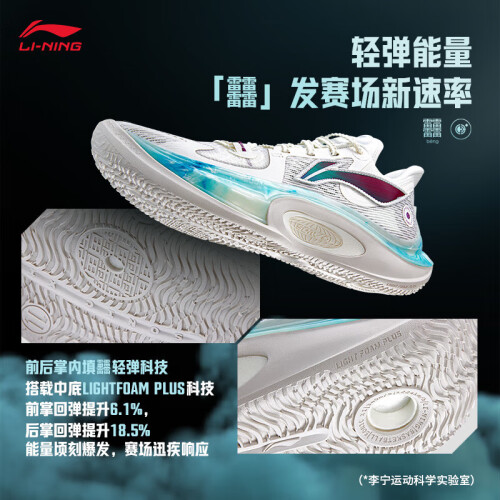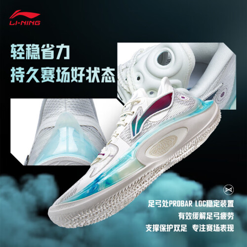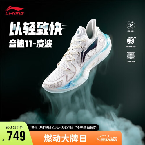 LI-NING 李宁 音速11-凌波 男款实战篮球鞋 ABAT021,嵌入中底足弓处的稳定装置,有效缓解足弓疲劳,前后掌内填䨻轻弹科技,搭载中底LIGHTFOAM PLUS科技,前掌回弹提升6.1%,后掌回弹提升18.5% 能量顷刻爆发,赛场迅疾响应,COOL SHELL高强度透气鞋面系统 ,舒适轻爽,自如释放,优化轻快脚感,应季透气,轻质鞋身,轻盈升级,低帮设计搭配鞋舌立体填充,以轻致快,领跑全场。