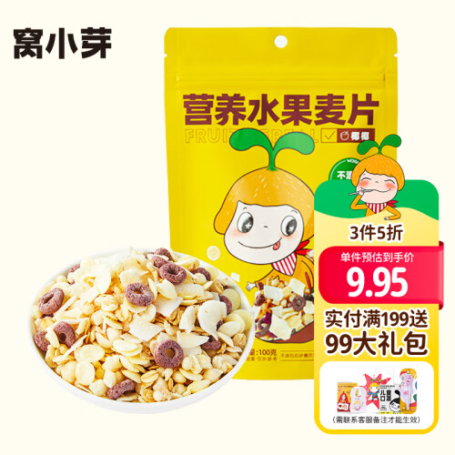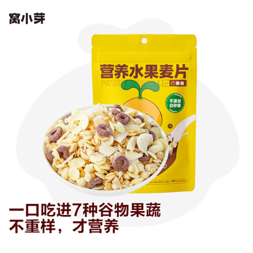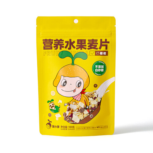 窝小芽 宝宝营养水果麦片 100g ,果蔬含量≥10%,富含膳食纤维&含钙。低温烘焙非油炸,拒绝反式脂肪酸。低温烘焙不渗油,口感好有营养。