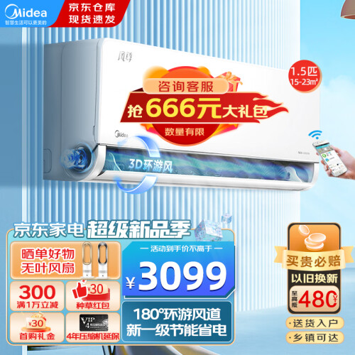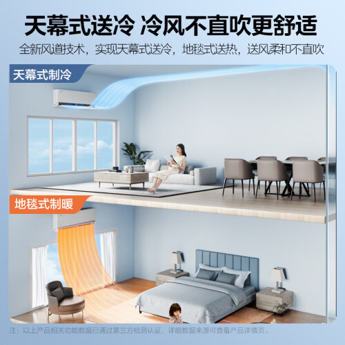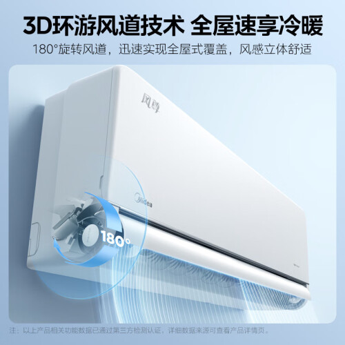 美的风尊科技版,采用3D环游风设计,突破传统空调送风角度限制,上下摆动出风可以达到180°,可以实现全屋环绕送风;采用美的第三代控制技术,通过遥控器可以蓝牙闪连,无需遥控器轻松调温、调风,同时用电情况也一目了然;APF值为5.29,符合新一级能效标准;支持56℃+30分钟高温除菌,导风板采用可拆卸设计,方便日常清洗。