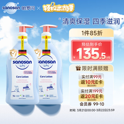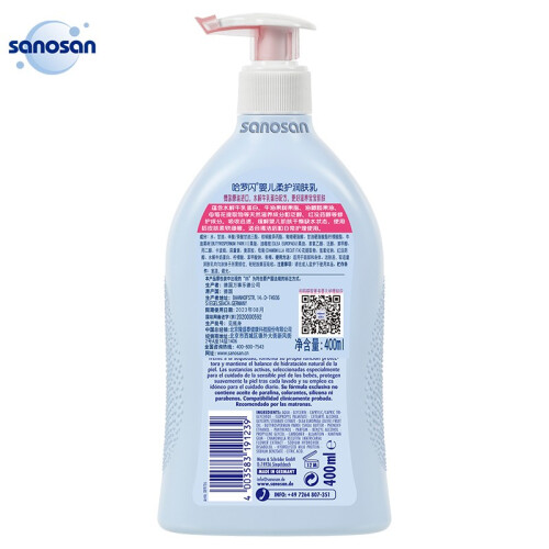 sanosan哈罗闪是德国专业的母婴护肤品牌,产品以安全、温和、天然著称。这款哈罗闪婴儿柔润护肤乳,接近婴儿皮肤酸碱度,配方接近母乳成分,温和天然,可有效防止宝宝肌肤干燥,滋润宝宝皮肤,加强保湿和锁水功能。可用于脸部和身体使用。