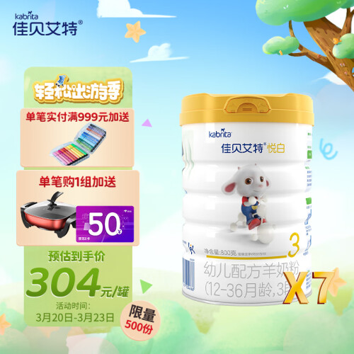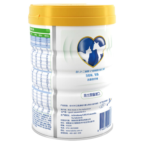 Kabrita品牌创建于1897年,是一个拥有百年历史的老字号品牌,旗下主要的产品有新鲜羊奶、羊酸奶、羊乳酪、婴幼儿配方羊奶粉、妈妈羊奶粉,是较早推出婴幼儿羊奶粉的品牌。这款悦白系列奶粉采用纯羊乳蛋白配方,未添加牛乳蛋白,羊奶脂肪球颗粒更细小,相比牛奶,羊奶更容易消化吸收。富含OPO结构脂和益生菌益生元组合,调节肠道功能,降低上火便秘几率。添加DHA+ARA帮助宝宝大脑和视力更好的发育,采用先进的脱膻技术,保证奶源纯正口感,不添加蔗糖、麦芽糊精等,不会造成宝宝龋齿等口腔问题。