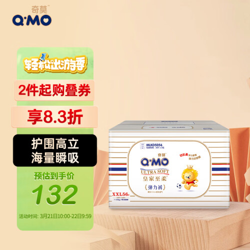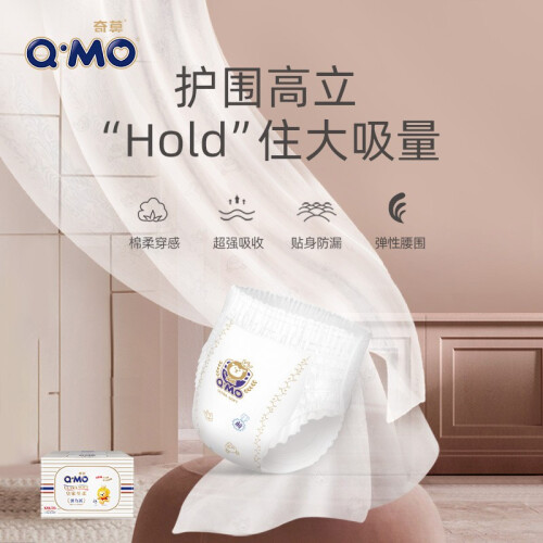 Q MO 奇莫 皇家至柔 婴儿拉拉裤 ,高腰围、全包臀设计,穿着更舒适合身,超吸水芯体,薄若无痕,负担甩光,瞬间干爽,均匀分布尿液,人体工学立体剪裁,温柔包裹无束缚,让宝宝自由自在玩耍。
