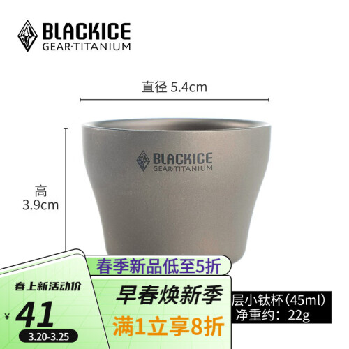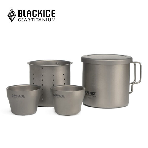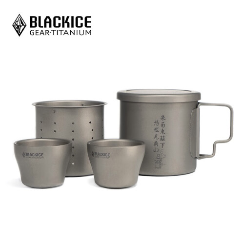 BLACKICE 黑冰 Z7107 纯钛茶具套装,包含茶盖、2个小茶杯、茶滤、杯子。采用金属“钛”材质,具有重量轻、强度高、耐酸碱、耐腐蚀等特性。表面喷砂工艺,不留指纹。一体收纳设计,层层嵌套,送网袋,携带收纳方便。