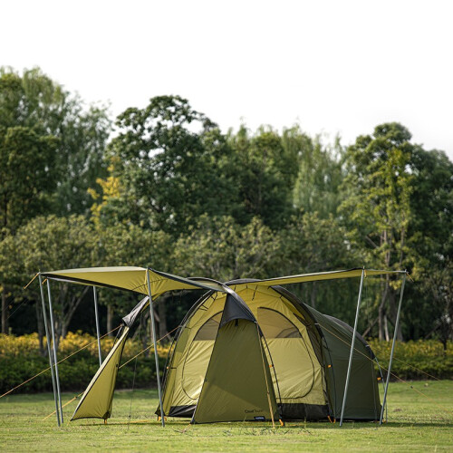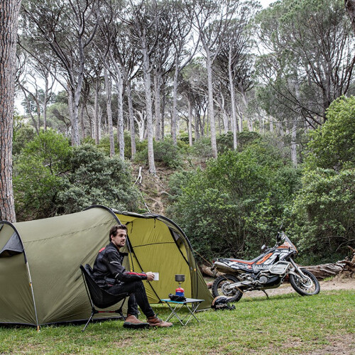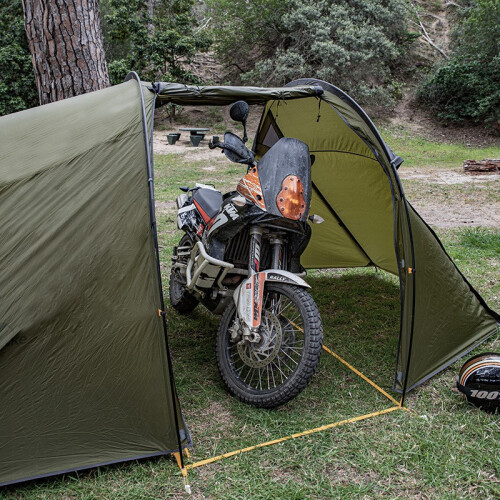 Naturehike 挪客户外 云旅摩托车双人帐篷 NH19ZP013,全开放式三开门门厅,宽大门厅可容纳一辆摩托车,内帐前后双开门设计,40D尼龙格子布,防雨防风,抗寒透气,稳固且耐用。