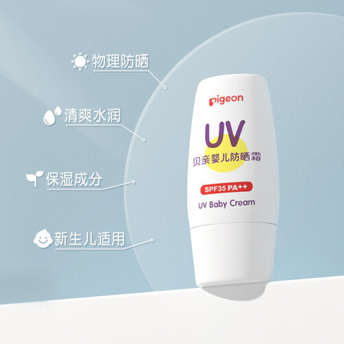 pigeon贝亲婴儿防晒露,采用物理防晒配方,较为温和,适合宝宝使用。同时配合保湿成分,能够在防晒的同时保持宝宝肌肤柔滑幼嫩。液体质地容易涂抹,小容量也方便携带补涂。