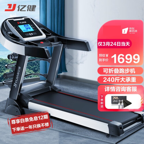 YIJIAN 亿健 JD618 家用折叠跑步机,国家专利多级减震科技,专为国人体格定制,保护膝盖、踝关节,保障安全畅跑。灵感来源于汽车减震系统,充分吸收化解冲击力,有效降低40%*的足底压强,跑感柔韧,高效护膝。