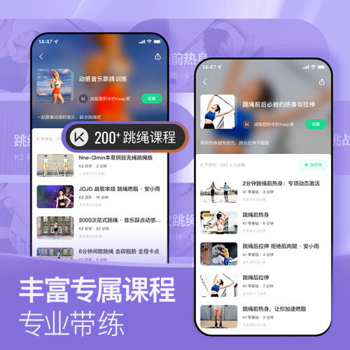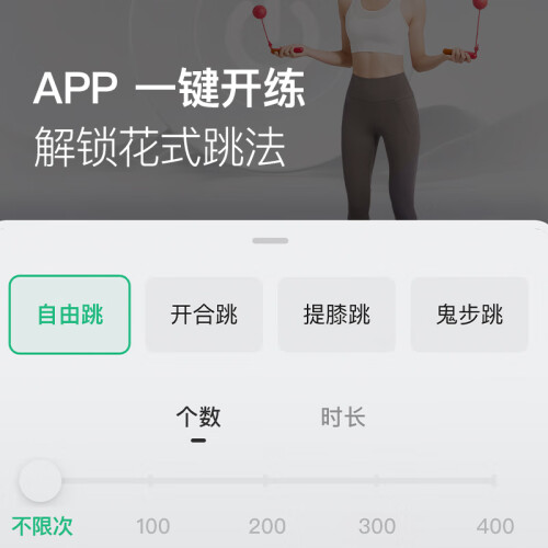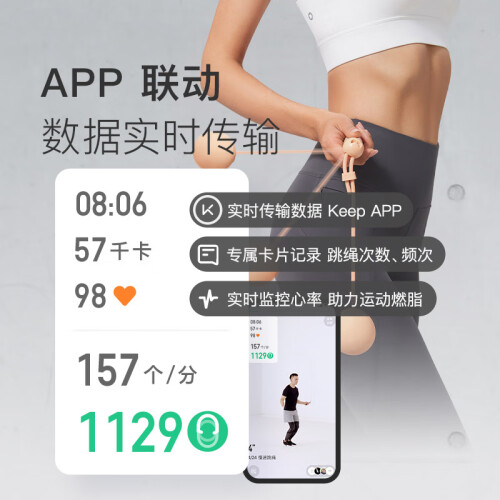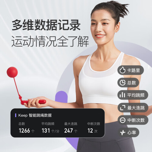 40g科学配重燃脂大球,不轻不重,手腕不酸,跳动更持久。APP多模式切换,解锁花式跳法,普通跳、开合跳、提膝跳、鬼步跳、弓步跳等10余种花式动作,配合计时、计数多种模式组合。
