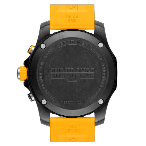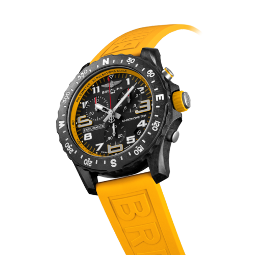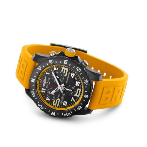 全新百年灵专业耐力腕表共有五种不同颜色。每款腕表均配以黑色表盘和镌刻有东、南、西、北(E、S、W、N)四个罗盘基本方向点的黑色双向旋转表圈。五种款式均呈现与众不同的鲜明色彩:腕表设有内表圈,并标有实用的脉搏计刻度,有白色、蓝色、黄色、橙色或红色可供选择。