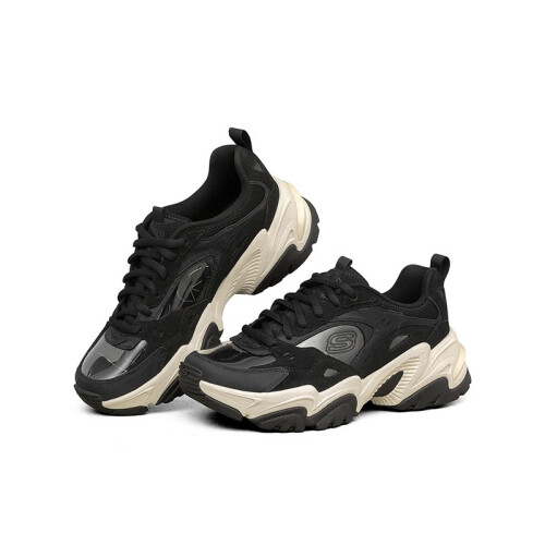 SKECHERS 斯凯奇 Reality to idea联名 女子厚底老爹鞋 896011,前卫型格,复古新潮,反毛皮多层次拼接,质感出众,融入透明PVC材质叠加鞋面,塑造全新机能风老爹鞋,玩转复古新潮流。