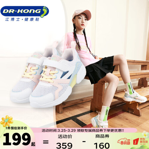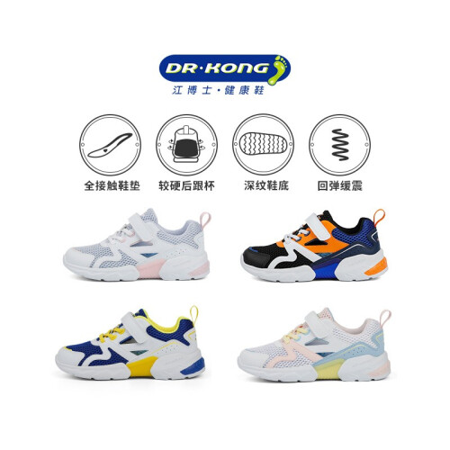 DR.KONG 江博士 宝宝网面透气运动鞋,撞色拼接,吸睛潮流配色,带来层次分明的视觉体验。透气孔循环呼吸,保持干爽。增加足底接触面,平均分散足底压力。
