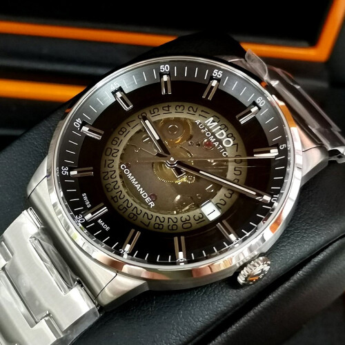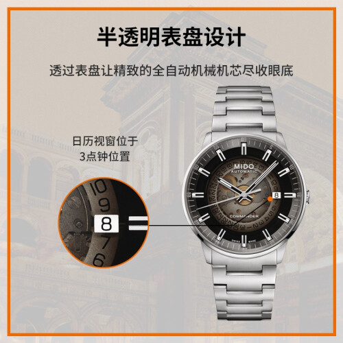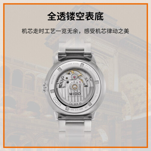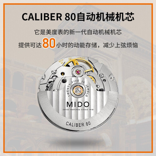 美度(MIDO)推出的这款40毫米腕表,搭载机械机芯,走时稳定。具有50米防水性能,满足日常防水需求。采用蓝宝石玻璃表镜,耐磨损且通透性好,读时清晰。圆形表盘配有阿拉伯数字刻度、大三针,且3点钟位置设有独立日期显示窗,简约大气。