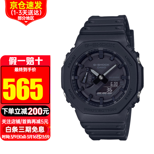 全新双显表款GA-2100在设计风格、结构、尺寸等方面都继承了初代“DW-5000C”的DNA。外观延用了初代的八角形结构,表壳材质使用了融入碳纤维的精细树脂,不仅坚韧耐用,还具备高刚性。手表厚度仅为11.8mm,保持坚韧的同时,做到了极简设计,是目前G-SHOCK双显表款中最薄的表款。GA-2100-1APR和GA-2100-4APR指针有蓄光涂层。