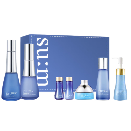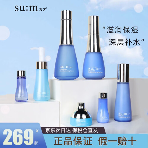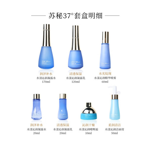 su:m37°是隶属于韩国LG集团下的已天然发酵产品而知名的中高端护肤品。Time energy 时间能量系列是采用自然发酵的原料,从肌肤深层调节紊乱的肌肤状态,修复疲劳受损的肌肤,很适合30岁左右的都市白领女性们。这套时间能量系列套装礼盒,主打去角质抗老化,维持肌肤水油平衡,并紧致肌肤,保持肌肤水润柔滑,远离老化现象,打造青春健康态。套装包含正装:时间能量新肌调理水160ml、时光能量新肌柔肤乳130ml、时光肌底保湿紧致面霜50ml、以及4件赠品。