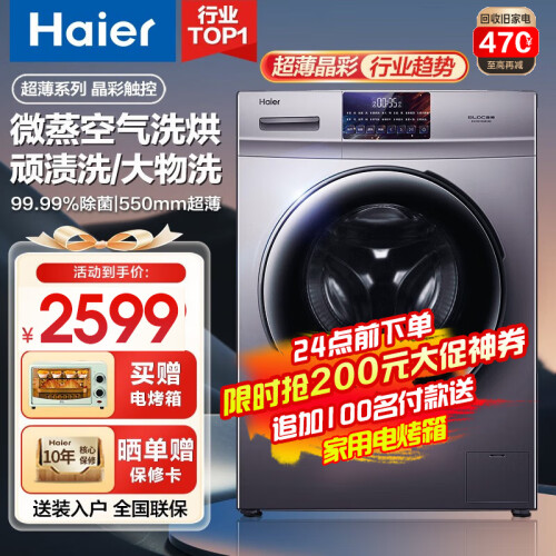 当前的位置: 首页 > 今日值得买 > 海尔(Haier)【超薄晶彩新品】海尔洗衣机全自动滚筒洗衣机洗烘一体脱水甩干空气洗专属顽渍洗家用大容量 10KG 洗烘一体【羽绒洗 蒸汽除菌】