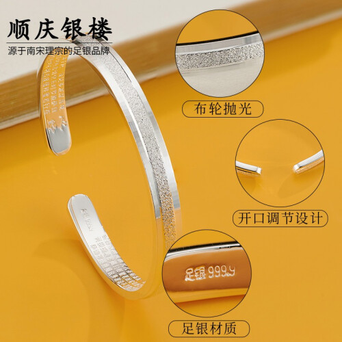 顺庆银楼 星沙心经足银手镯,采用9999足银材质打造,素雅银光,佩戴放心。开口设计,方便佩戴。多次打磨,触感舒适无毛刺。