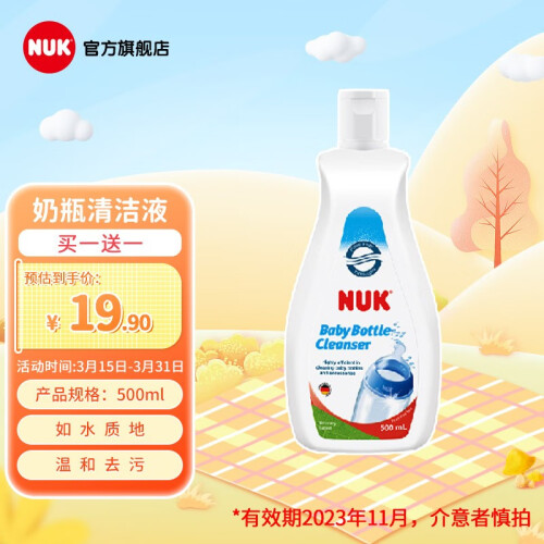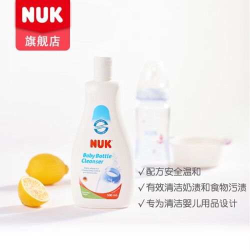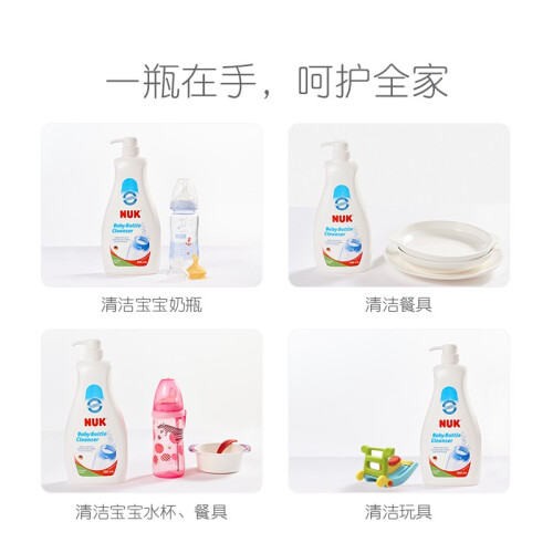 NUK 奶瓶奶嘴清洗液 ,天然温和,无香植物配方。如水样质地,更少化学添加,使用更安心。绿色环保,可自然降解,易冲洗无残留,泡沫丰富,轻松瓦解各种污渍,用量更省,去污力强。不伤器具、不伤手。