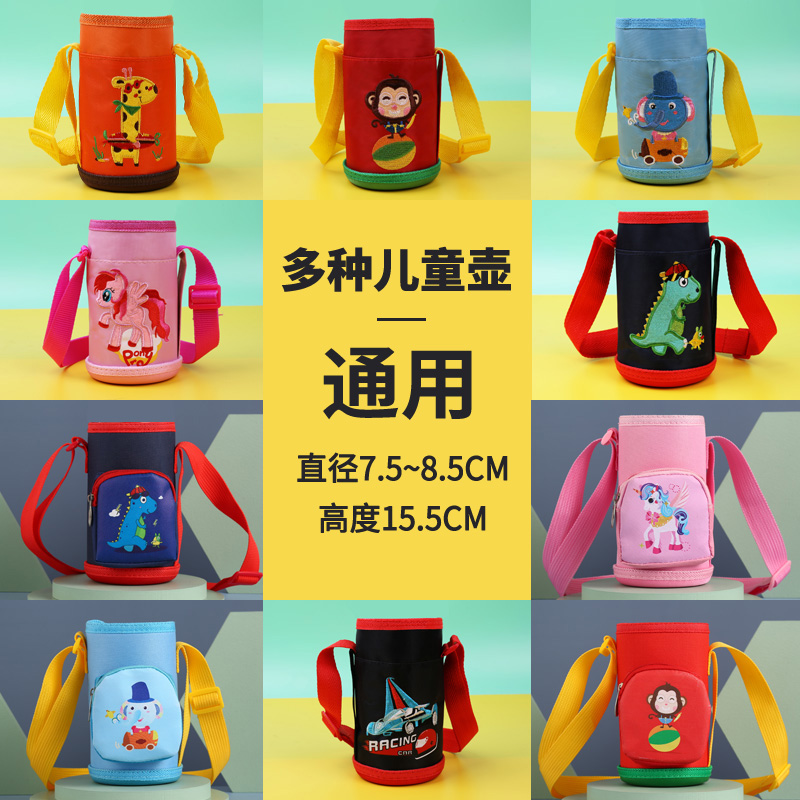 更多儿童保温杯套水杯套可爱卡通水壶斜挎防烫保护套袋带背带提绳通用