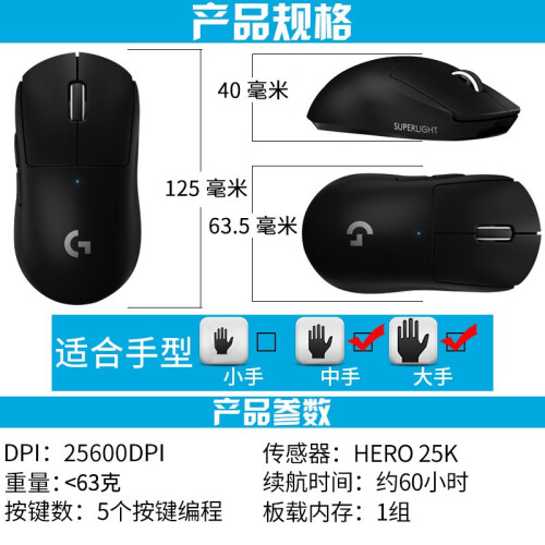 PRO X SUPERLIGHT配备了Logitech G的HERO 25K传感器(25,600 DPI),这是业界首个亚微米级鼠标传感器,可以精确地跟踪亚微米级的运动(大约是头发厚度的1/50),而不会影响性能的准确性。