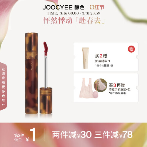 Joocyee 酵色 琥珀哑光雾面唇釉(多色可选),酵色本次产品从琥珀材质中汲取灵感,将未加工的动人光泽注入彩妆,演绎自然生动的美感。刷头全新升级,尖头刷便于取色上色和勾勒唇形。丝绒雾面的质地带来高级柔焦的妆感,让整体妆面得以升华,哑光滋润不拔干,易上色不显唇纹~热卖色号:V01粉褐白桃(温柔豆沙色,一抹即现温柔感)、V05杏仁肉桂(秋冬必备的高级气质色)、V06枫糖番茄(浓郁番茄色,复古显白);