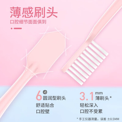 绵密触感,柔韧磨尖丝,深入牙缝牙龈沟清洁。