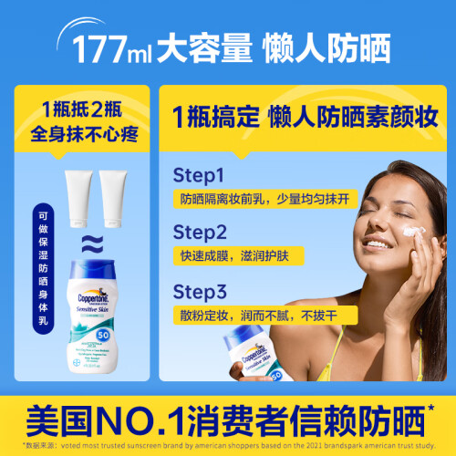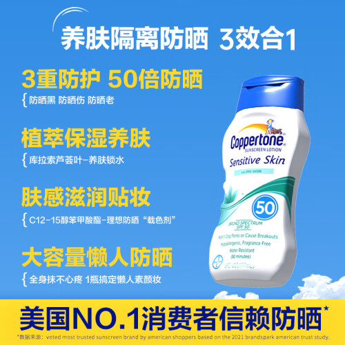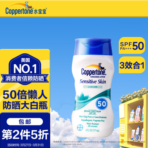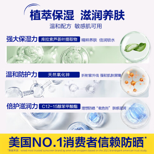 这款Coppertone 确美同 水宝宝 清润倍护物理防晒霜,主要以物理防晒剂氧化锌为主打,佐以Octinoxate、Octisalate辅助,照顾到所有波长的UVA和UVB阻隔,兼具了物理防晒对脆弱肌肤的友好度,并适当减少了大量氧化锌带来的泛白感,保留了相较清爽的肤感,适合敏感肌、脆弱肌肤日常使用。