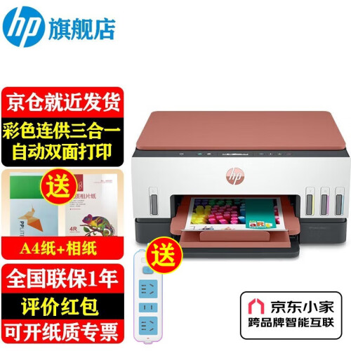惠普Smart Tank676一体机,惠普全新连供一体机,连供容量更大,双频WiFi高效稳定,支持多种远程打印模式。惠彩676具有8000页彩页打印量和6000页黑白打印量,黑白打印单页成本仅1分钱,让你尽享自由畅打新体验。 Smart Tank 676集合了打印、复印、扫描三合一功能,支持自动双面打印,黑白打印速度为12页/分钟,彩色打印7页/分钟,节约纸张更节约时间,孩子的作业可以减少一半重量。 在功能方面,该机具备了微信小程序打印功能,无需再下载专门的手机APP,随时随地都可以进行远程打印。并且支持直接打印微信聊天记录里的图片和文件,告别频繁界面切换,提高办公效率。还可以通过微信分享打印机给其他人,实时连接访客,打印更便捷。 下载HP Smart智能应用,可以实时监测耗材余量,可以直接扫描文件至手机、电子邮件等,还可以快速编辑打印文本,免去电脑操作。