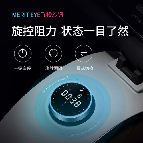 Q1划船机适配MENT超燃脂课程,自动实时同步课程中教练使用的阻力等参数変化,真正解放双手,跟着划就对了。MERIT EYE飞梭旋钮,旋转调阻、按压切换。无论是桨频、运动时间还是卡路里消耗,都能在屏中显示。Q1采用电磁控阻力系统,通过控制磁场进行阻力调节,单挡阻力更大,更精准、更耐用。