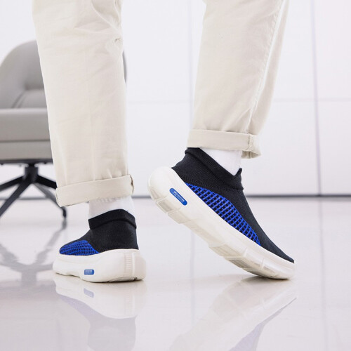 鞋身采用“袜子鞋”造型,上脚方便又舒适,中底方面则是搭配融合「轻弹+态极」两大科技,将袜子+态极+轻弹结合在一起。希望穿着者直接光脚穿上鞋子就走,不增加过多的动作和步骤,鞋面也配备有透气网眼,即便是裸脚穿,也能达到透气清凉的效果。