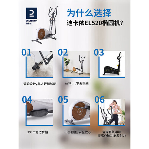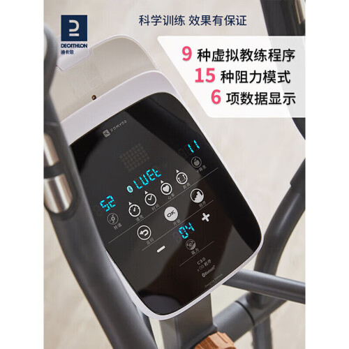 DECATHLON 迪卡侬 FICQ 2474990 家用椭圆机,电磁控制,皮带设计,运转时发出约与人的轻声细语同样分贝,畅快运动不扰民。9种虚拟教练程序,从体能训练随心选择。15档阻力轻松调节,握把按钮或触控面板随心调节阻力。