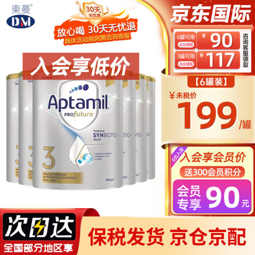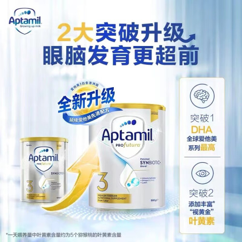 这款为澳洲Aptamil 爱他美白金版3段婴幼儿奶粉,相比金装版改良了配方,蕴含专利“低聚糖益生元”组成的合生素,更适合调节宝宝肠胃,优化了DHA、ARA含量配比,更利于宝宝的脑部发育和眼部发育,低蛋白水平促进婴儿生长水平更接近于母乳喂养的宝宝,尽量减低在宝宝5岁前成为超重儿童的可能性。规格:900g。