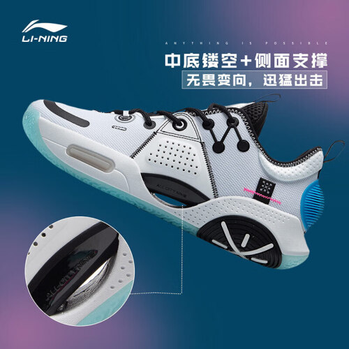 李宁(LI-NING)推出的这款男子篮球鞋,选用纺织品与合成革打造鞋面,穿着轻盈且舒适贴合。内置贯穿式䨻轻弹科技,帮助增加运动前进能量。中底采用镂空设计,可减轻鞋身重量,提升侧向支撑性能。橡胶外底结合防滑纹路,抓地力强,具有耐磨性能。鞋头防撞设计,减少脚趾碰撞伤害;搭配后跟提拉带,穿脱省时省力。