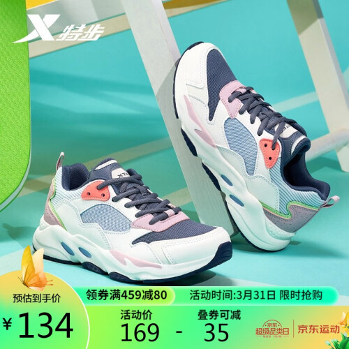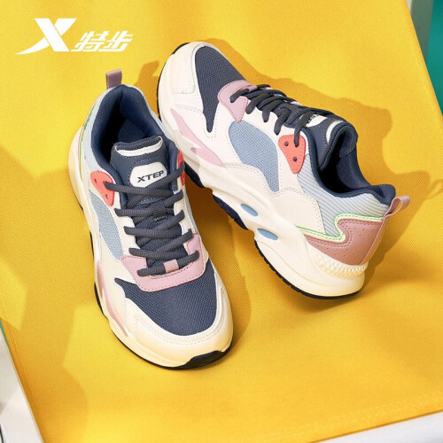 XTEP 特步 600173137462 女款休闲鞋,设计简单大方,休闲百搭。绑带设计,方便快捷。防滑橡胶鞋底,网布面料,穿着舒适透气。