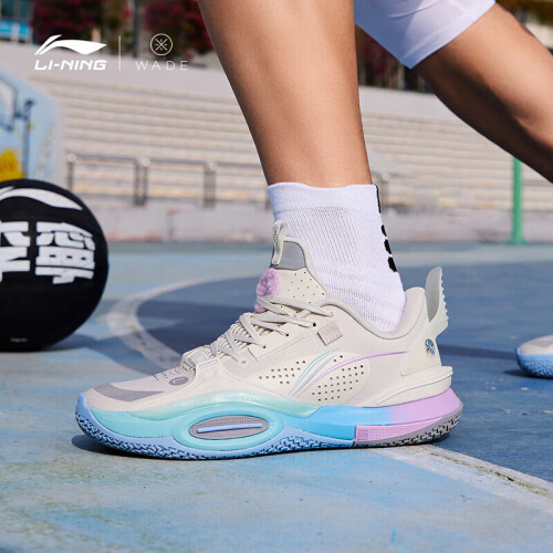 鞋身采用棉花糖的白、粉、蓝作为配色灵感,诠释韦德单纯美好的儿时回忆及他对孩子们的爱。鞋舌处韦德标识采用毛绒材质打造,结合后跟透明TPU与多彩韦德标识营造梦幻效果。防侧翻再升级,足弓处坚实强韧稳定托盘,提供支撑性能,在推进力阶段给予足弓支撑,有效降低足弓的负担。配合外侧橡胶上翻+外侧TPU支撑片,鞋面与足部更贴合,为变向动作提供更好的包裹锁定,稳固双足,跃步迅捷灵动。