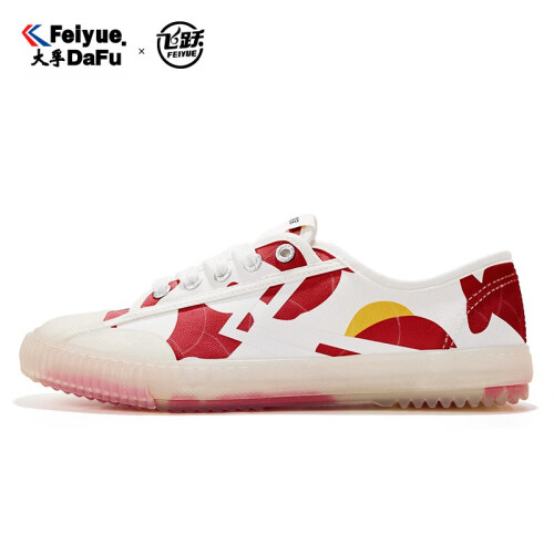 飞跃×余额宝联名锦鲤时尚单品,出场小白鞋,遇光变色,阳光下显示锦鲤图案;科技款设计,变色程度根据紫外线强弱变化;鞋面柔软舒适,透气不闷脚;订制抗氧化扣眼,橡胶鞋底,防滑耐穿。