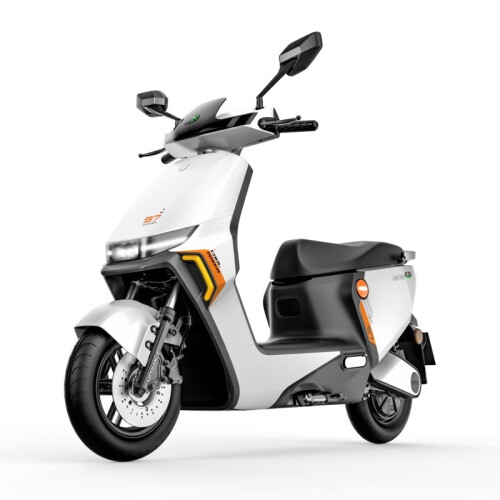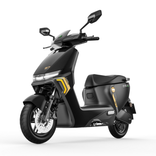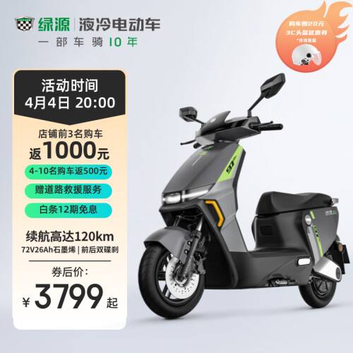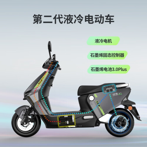 第二代液冷电动车S70,搭载绿源液冷电机2.0,1200W动力输出持久稳定。搭72V26Ah石墨烯电池3.0PLUS,电量充沛,百公里长续航,里程、舒适、动力三档速度一键调换,峰值超53km/h。车身机甲型风格,阵列式前照灯,矩阵大灯配合日行灯带。超清全面屏仪表,车况尽收眼底。多种动力调节模式,APP、蓝牙、NFC多种解锁方式,钢丝轮胎,前后碟刹,舒适液压减震。