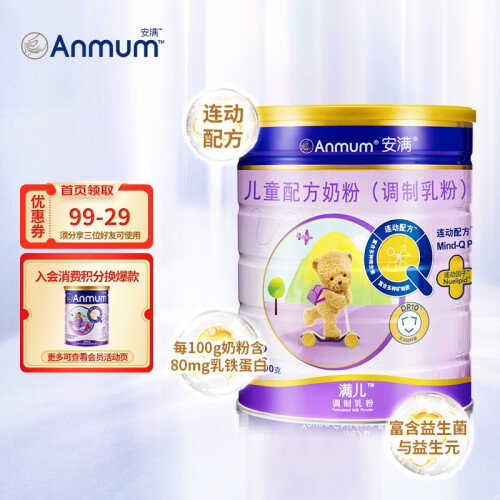 此款Anmum 安满 儿童配方奶粉 4段 800g,多维营养,轻松拥有,每天2杯为儿童成长提供营养补充。富含益生菌、乳铁蛋白,宝贝茁壮成长,元气满满有底气。