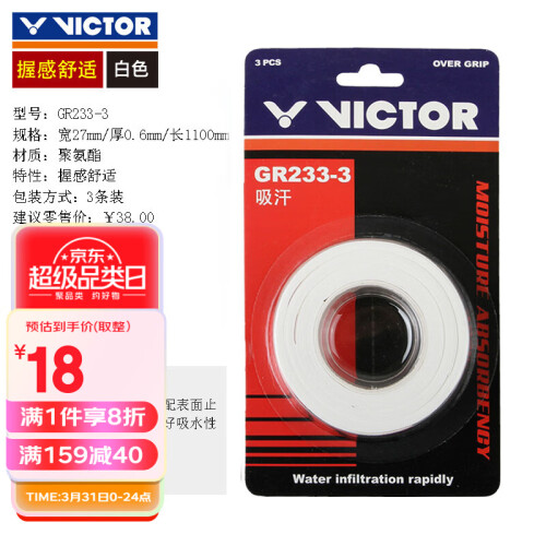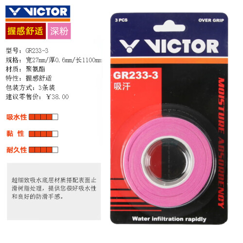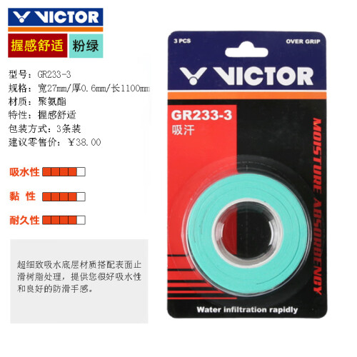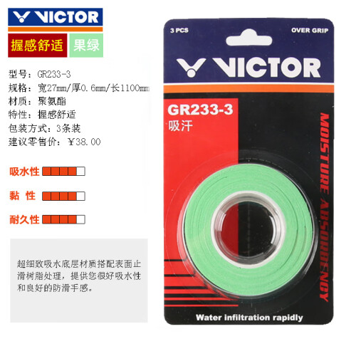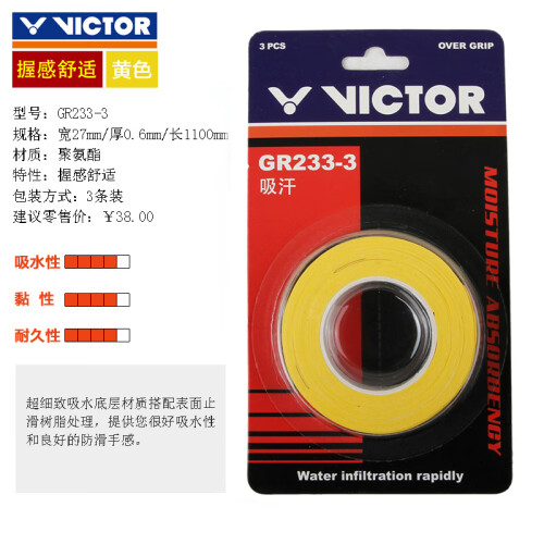 吸水的底层材质搭配表面止滑树脂,为你提供更好的吸水性、不易滑,舒适度高。手胶上印有品牌LOGO,彰显品牌价值。附带三条封口条,弹性和黏性较好,贴合后不易掉落。