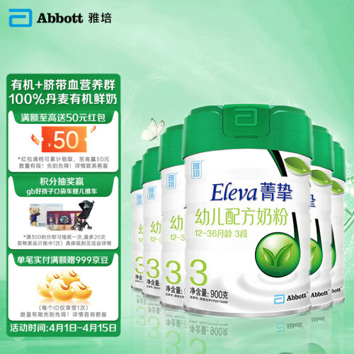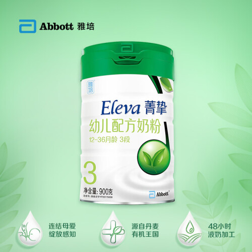 Eleva菁智有机幼儿配方奶粉3段取材自欧盟认证的有机奶源,配方升级为“智吸收结构”配方,分子结构调整后,吸收率也有提高;通过优化营养分子,使得DHA、叶黄素等营养也更易汲取。 雅培 菁智 优纯系列3段奶粉是之前雅培 菁智智护100的升级款,包装和配方都有改进,更显高大上,无疑是现在市面上售卖的高端奶粉之一。使用的仍然是欧盟认证的有机奶源,配方升级为“智吸收结构”配方,分子结构调整后,吸收率也有提高;通过优化营养分子,使得 DHA、叶黄素等营养也更易汲取。规格900g。