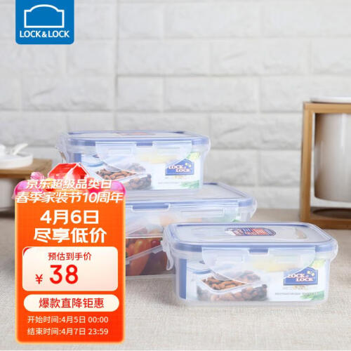 LOCK&LOCK 乐扣乐扣 HPL855S001 塑料保鲜盒 5件套,盒体采用安全的聚丙烯PP材料制作,安全无毒,可承受温度为-20℃~120℃,无论是微波炉还是冷冻柜使用都没问题;顶盖采用中空型硅胶条,压缩范围大,密封性强,可承受温度为-40℃~200℃;四面锁扣设计,不易洒漏,透湿度低,保鲜效果良好,夏季用来盛放水果、沙拉,或是日常带饭使用都没问题~