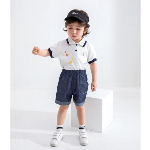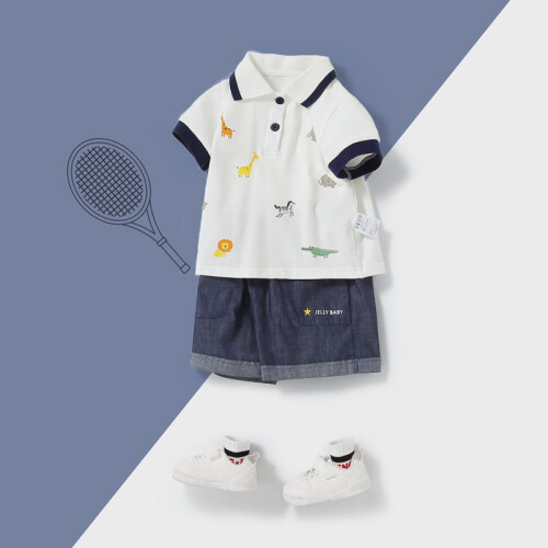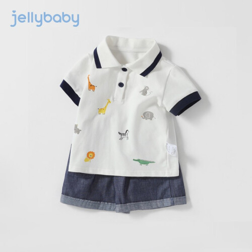 jellybaby 杰里贝比 儿童T恤短裤两件套,萌趣动物印花,俏皮醒目,POLO翻领,范儿十足,是当代时尚潮流的宝宝套装呐。