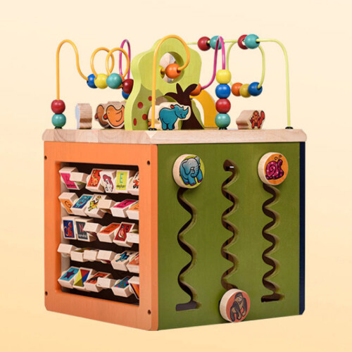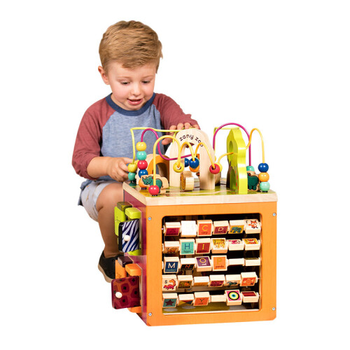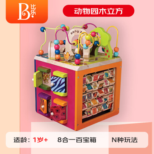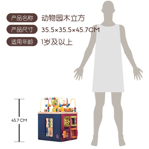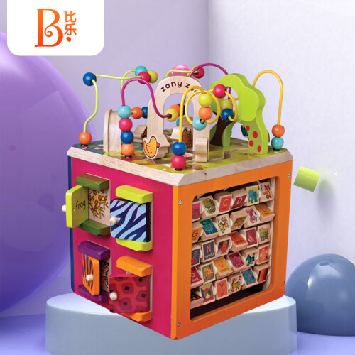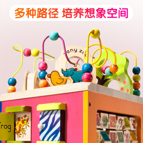 B.Toys 比乐是来自有119年悠久历史的加拿大玩具公司Battat,秉承感统训练玩具设计理念,针对新生儿到12岁孩子开发的益智感统玩具。比乐的产品设计新颖独特,与众不同,给人以不同的感受,以能够激发每个孩子的个体发展为宗旨。这款B.Toys 比乐 BX1004Z 动物园木立方采用动物园主题派对积木,生动卡通形象,全方位安全体验,让宝宝在趣味中学习成长。这套产品为木质,四扇门上的不同花纹藏着小线索,打开门看看里面住着谁,字母翻版的另一面是帮助记忆的关联图案,帮助宝宝趣味学习。